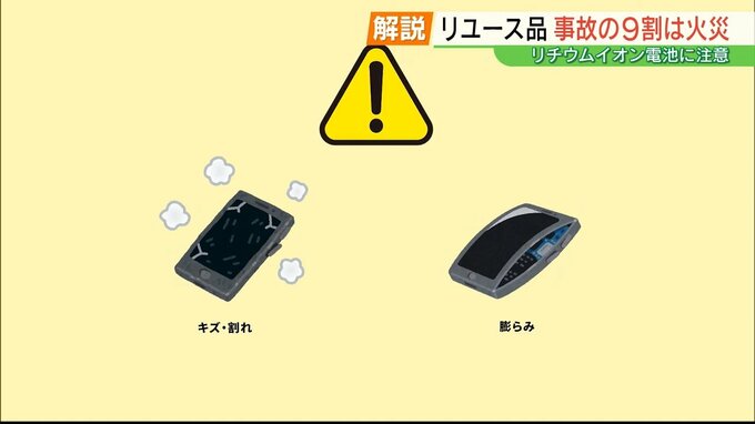 4月から新生活が始まるという方も多いこの時期、知人から家電を譲ってもらったり、フリマサイトで買ったりと「リユース品」を使い始める人も多いかもしれません。ただ、2020年から24年までの5年間にリユース品による事故は310件あり、そのうちおよそ9割は火災事故。また、中でもリチウムイオン電池を搭載している製品による事故がおよそ3割を占めていて、NITE=製品評価技術基盤機構が、注意を呼びかけています。