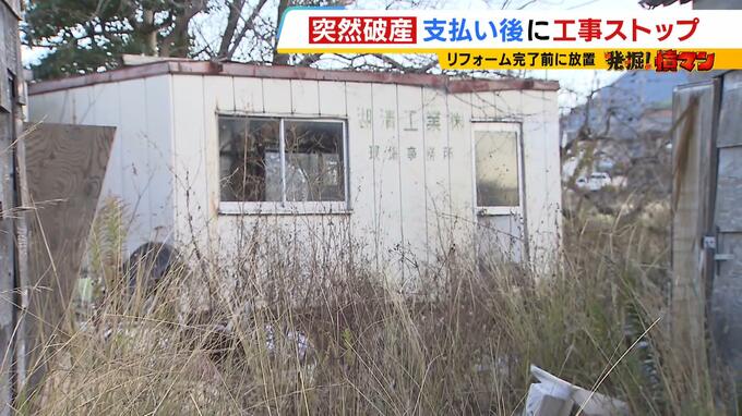 (記者リポート)「会社のすぐ横には、草が生い茂った先に『現場事務所』と書かれた建物がありますが、長らく放置されているようにも見えます」
