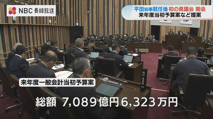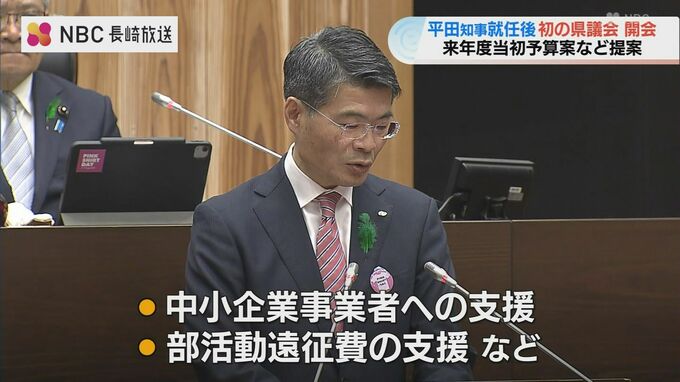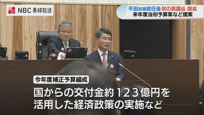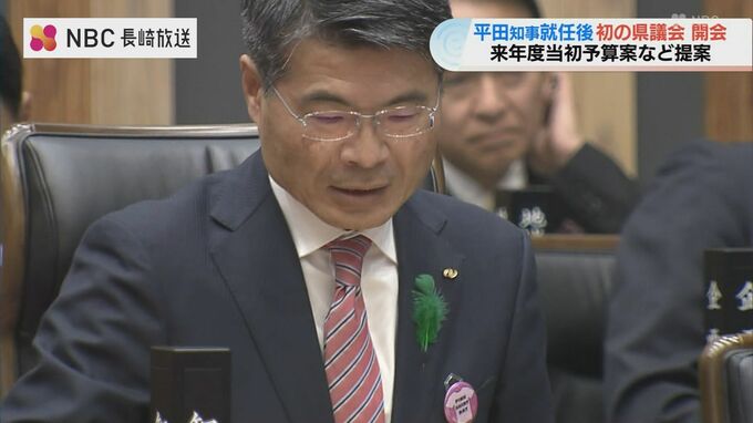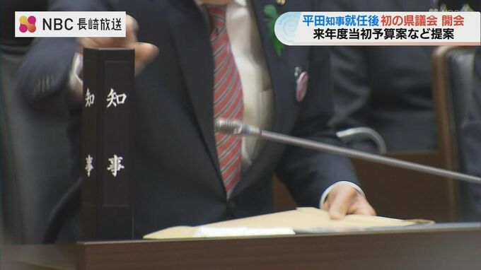 長崎県知事として初の議会に臨んだ平田知事。知事選で訴えた物価高対策などを念頭に「県政を前に進める」と改めて所信を述べました。