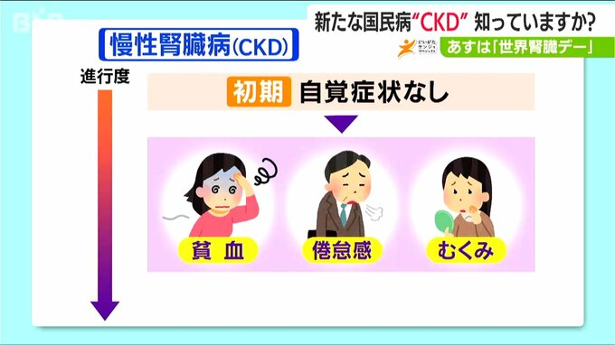 「その他、骨折とか、あるいは体が痒くなるとか、CKDが進行するといろいろな自覚症状が出てきます」