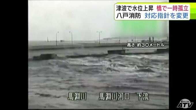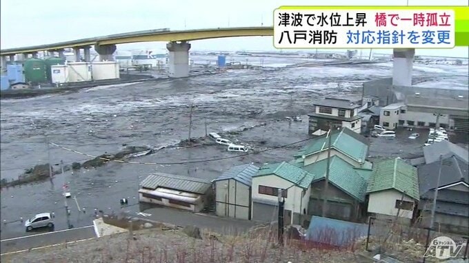津波が狭い河口部分に押し寄せたことで水位は急激に上昇したと見られます。