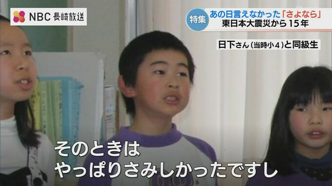 あの日、言えなかった「さよなら」震災で離ればなれの当時の小学生 ふるさとで節目の卒業式「再会で動き出した時間」 長崎放送 2026年3月11日(水) 21:05 国内 「そのときはやっぱりさみしかった」 「友達のこと頭に浮かんだり」 原発から約18キロの地区に暮らしていた日下さん一家は、親戚を頼って震災当日からおよそ1週間かけて佐世保市まで避難した。着の身着のままの移動だった。