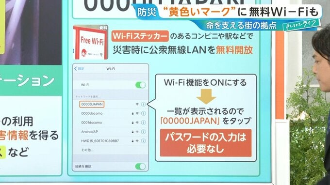 Wi-Fiステッカーのあるコンビニや駅などで、災害時に公衆無線LANを無料開放するものです。