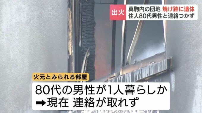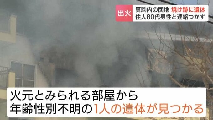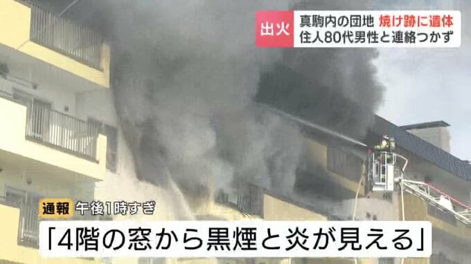 今も消防による消火活動が続いていて、先ほど火元とみられる部屋から年齢と性別がわからない1人の遺体が見つかりました。