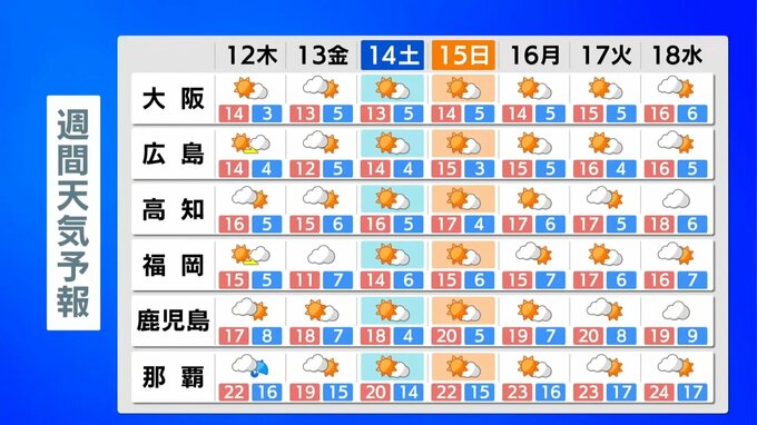 大阪 :14℃ 岡山 :14℃