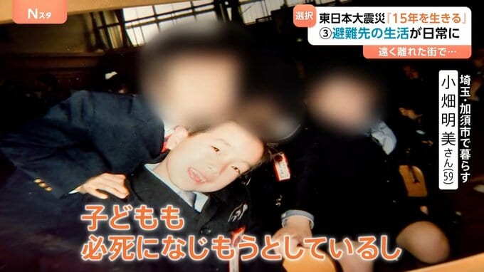 震災の1か月後、双葉町の子どもたちは加須市の小学校に入学。明美さんの息子も小学生になりました。