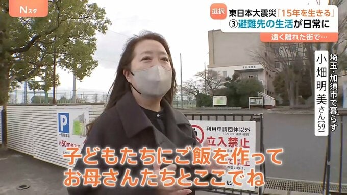 小畑明美さん(59)。自宅のあるエリアには今も戻れません。事故後15年間、避難先の埼玉県・加須市で暮らしています。