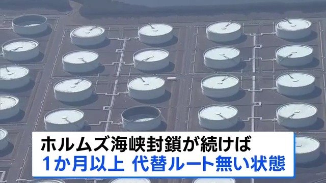 経済産業省によりますと、ホルムズ海峡の封鎖が続けば、この先1か月以上、代替ルートが無い状態が続くため、日本単独で放出が必要になったということです。