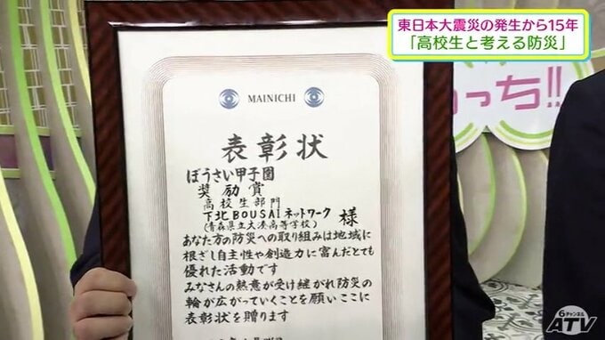 「私たち『下北BOUSAIネットワーク』では、青森県下北むつ地区にある県立学校5校が共同で防災活動に取り組んでいます」と言うのは、県立大湊高校の生徒たちです。同ネットワークは、むつ市・下北地域の県立学校などが連携し、震災の教訓継承と防災教育の普及を目指す組織です。