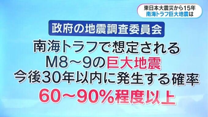 政府の地震調査委員会は、南海トラフで想定されるマグニチュード8から9の巨大地震が、今後30年以内に起きる確率を60~90%程度以上としています。