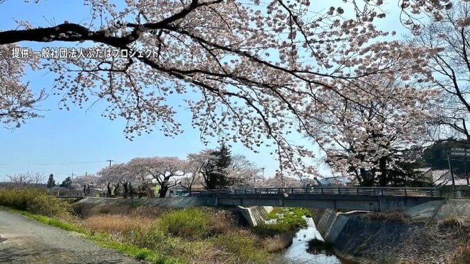 震災後も変わらない風景として、町民に親しまれてきた川沿いの桜。そのそばに太陽光パネルが建てられた際、誤って3本の桜が切られてしまったのだといいます。