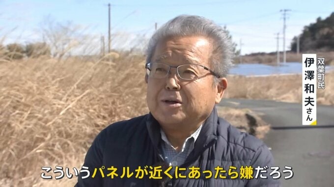 双葉町民の伊澤和夫さんは、太陽光パネルによって変わっていく町並みが、避難先で暮らす町民の帰還を遠ざけてしまうと危惧しています。
