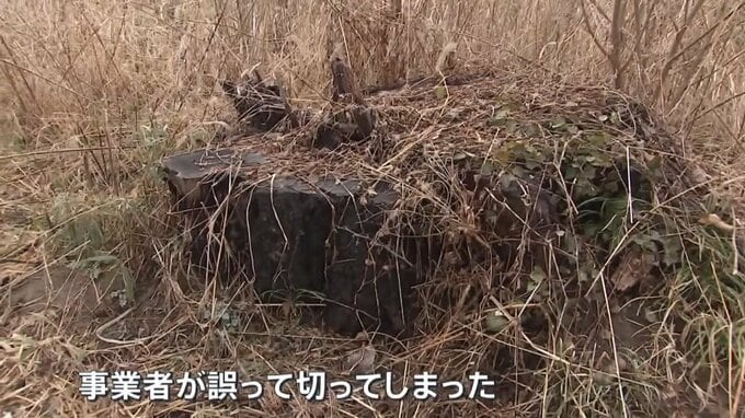 「これが桜の木。事業者が誤って切ってしまった。とても残念」