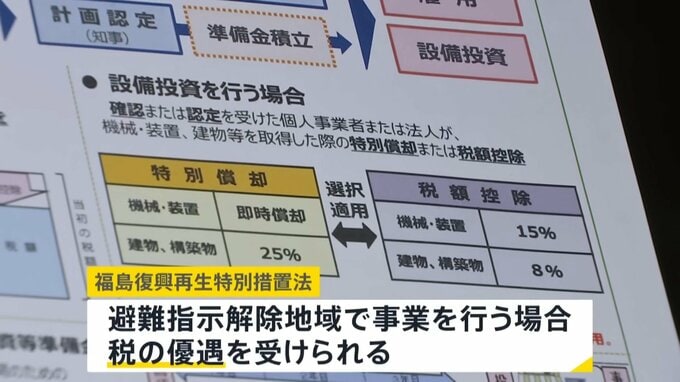 この法律では、避難指示が解除された地域で事業を行う場合、税の優遇を受けることができます。