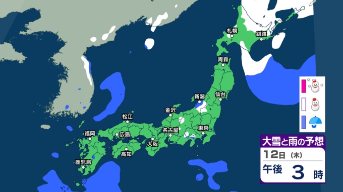 3. 北海道はあす13日朝までの24時間に40cmの降雪か 東日本・西日本・南西諸島は落雷や急な強い雨などに注意【今後の雨雪シミュレーション・12日正午更新】