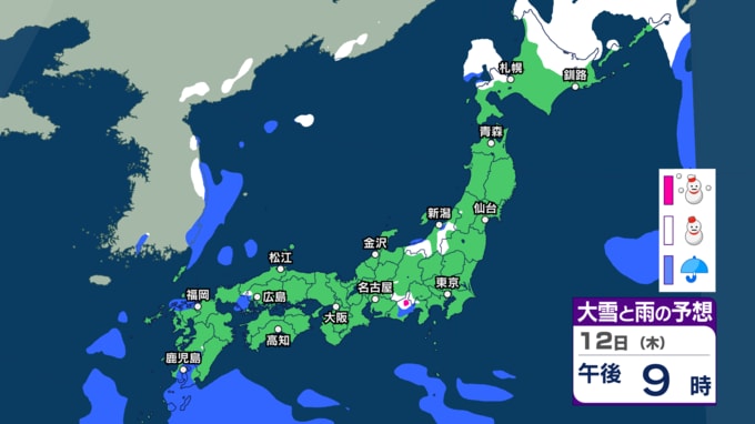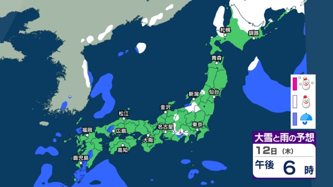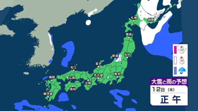 北海道はあす13日朝までの24時間に40cmの降雪か 東日本・西日本・南西諸島は落雷や急な強い雨などに注意【今後の雨雪シミュレーション・12日正午更新】
