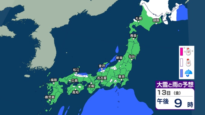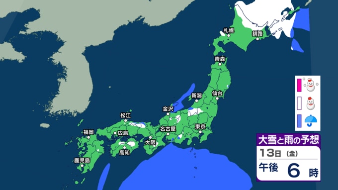 【東京首都圏10日雪?】東京・神奈川・千葉・埼玉・茨城・群馬・栃木・山梨・長野 関東甲信8日(日)~13日(金)3時間ごと雪雨シミュレーション 13日(金)広範囲で雪と雨の予想【気象庁8日現在】|TBS NEWS DIG