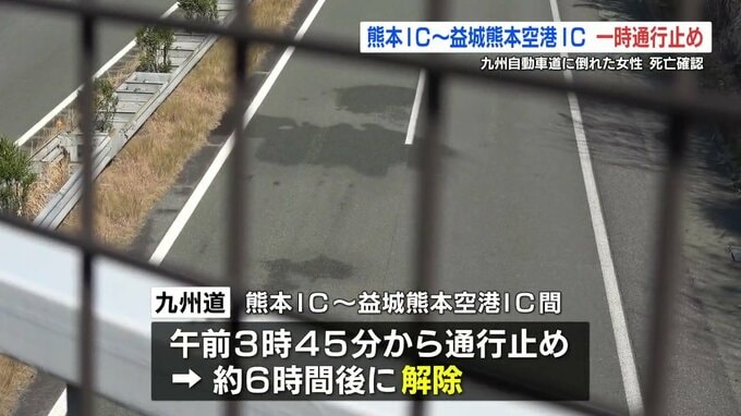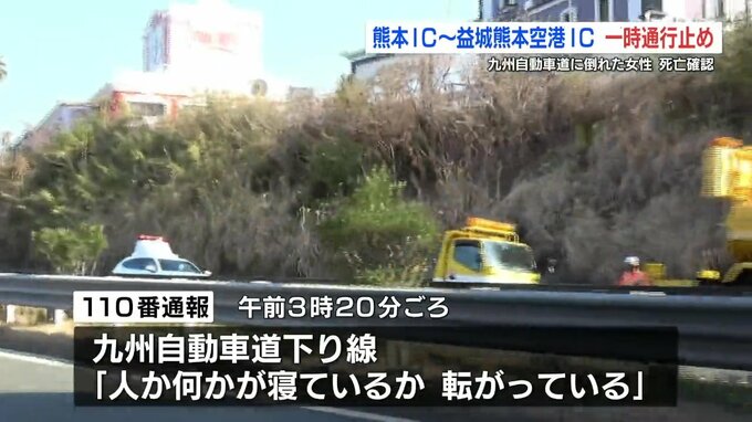 午前3時20分ごろ、熊本市東区の九州自動車道下り線で、「人か何かが寝ているか、転がっている」と、通行していた車の運転手から110番通報がありました。
