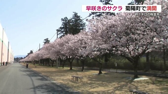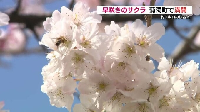 熊本県菊陽町で、早咲きのサクラが満開の花を咲かせています。