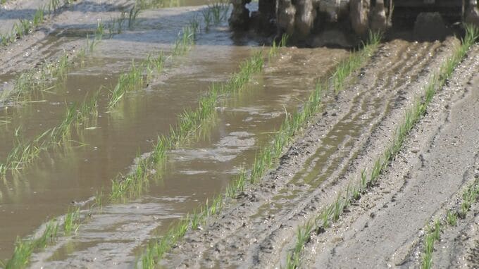 沖縄本島有数の米どころとして知られる名護市羽地で、一期作米の田植えが始まりました。