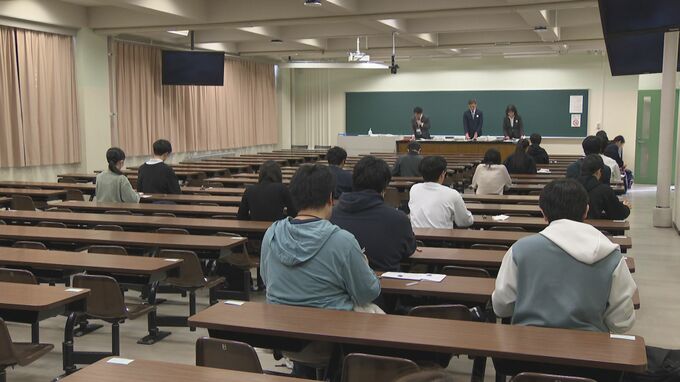 北大の後期日程は募集人数444人に対して、志願者数は3857人と昨年度より約7%減り、実際に受験したのは前期日程の合格者などを除く1598人でした。