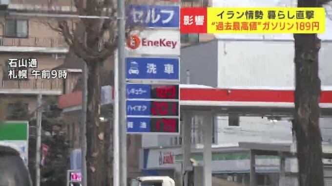 「札幌市内、石山通沿いのガソリンスタンドです。レギュラーが189円です」