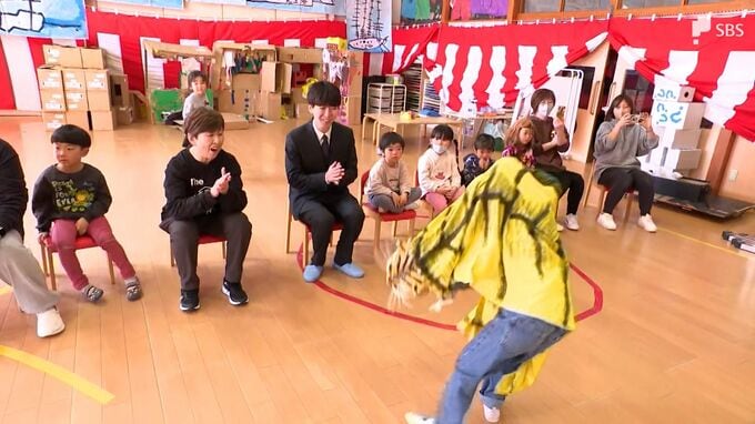 元気いっぱいに郷土芸能を披露する、岩手県大槌町にある「おおつちこども園」の園児たち。園長の八木澤弓美子さんです。