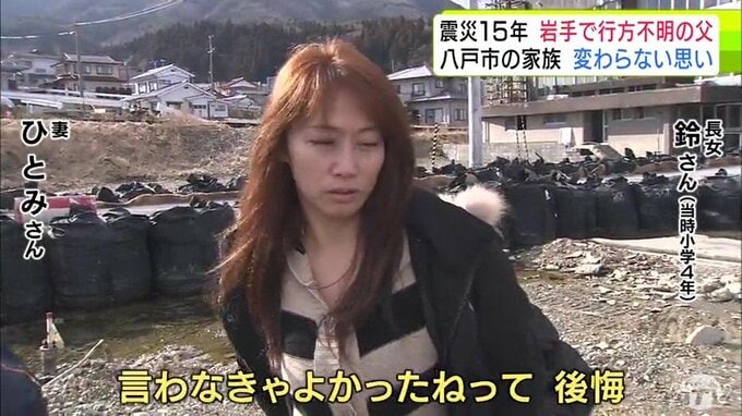 「(長女・鈴は)『近寄って来るな』とか『あっち行け』って言ったのをごめんなさいと…。いつも帰ってくると思っていたのが、急にいなくなっちゃったから…。言わなきゃよかったねって…。後悔」