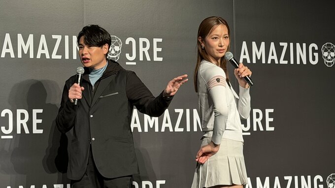 お笑いコンビ・平成ノブシコブシの吉村崇さん、モデルでタレントの高橋ユウさんが12日、ゴルフブランド「AMAZINGCRE」日本初出店記念イベントに登壇しました。