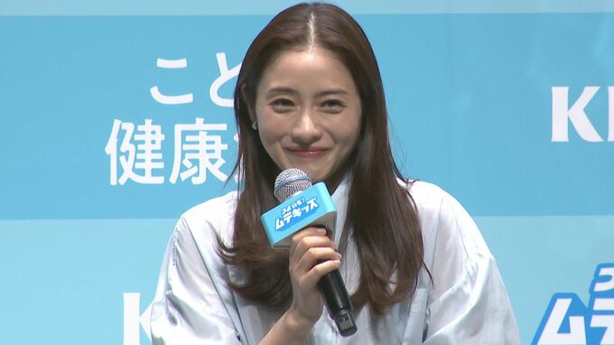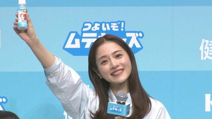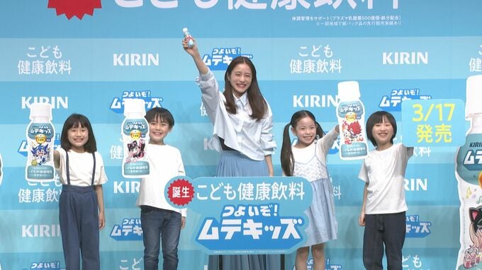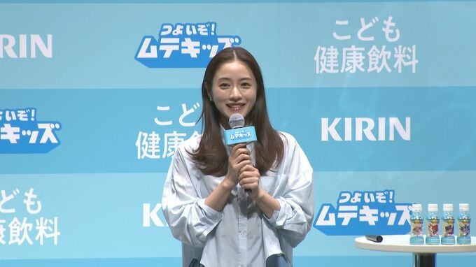 俳優の石原さとみさんが、「キリン つよいぞ!ムテキッズ」新商品&新CM発表会に登場しました。