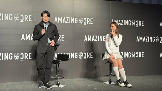 お笑いコンビ・平成ノブシコブシの吉村崇さん、モデルでタレントの高橋ユウさんが12日、ゴルフブランド「AMAZINGCRE」日本初出店記念イベントに登壇しました。