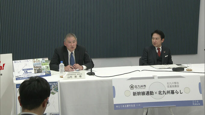 JR西日本と不動産会社、銀行など10社でつくる「北九州移住促進協議会」は12日、北九州市役所で武内市長と共同会見を開きました。