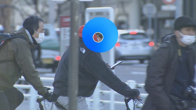 「スマホを片手に持ったまま自転車をこいでいます。イヤホンもしていて周りを一切見ていない様子です」