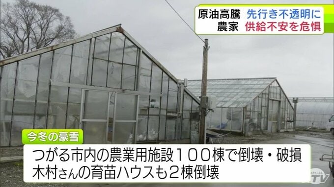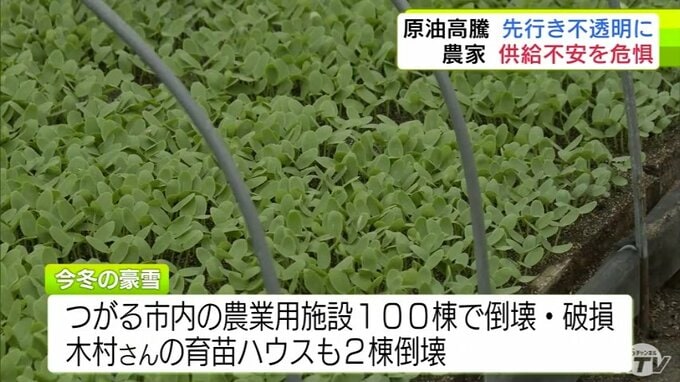 “豪雪”と原油高騰のダブルパンチ 1週間で約1000リットルの灯油を使用する農家からは供給不安を危惧する声「切れなければいいな…」 中東情勢の先行きが見えないなか各方面で広がる影響 青森テレビ 2026年3月12日(木) 21:15 国内 【写真を見る】苗の生産農家の育苗ハウス ※「NEWS DIG」のアプリやサイト以外でご覧の方は、関連リンクから画像をご確認いただけます。