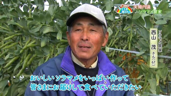 (ソラマメ農家 西山茂さん)「おいしいソラマメをいっぱい作って、皆さまにお届けして食べていただきたい」