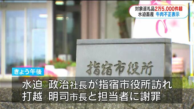 また、指宿市によりますと、12日午後、水迫畜産の水迫政治社長が指宿市役所を訪れ、打越明司市長とふるさと納税の担当者に対し、謝罪したということです。