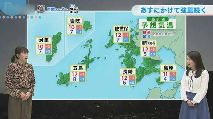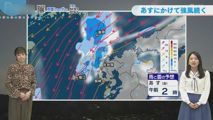 あす(金)にかけて、長崎県内では強風と雷雨に必要です。