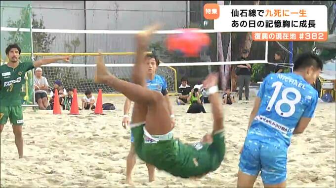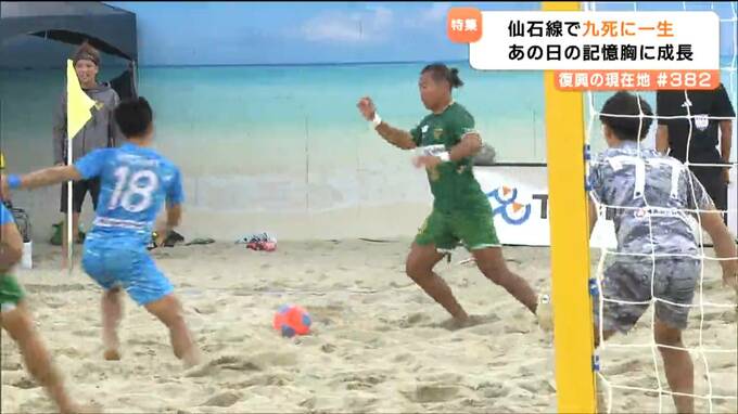 大事な一戦で見事ゴール。ビーチサッカーは、グラウンドでは難しいアクロバティックなプレーが醍醐味です。