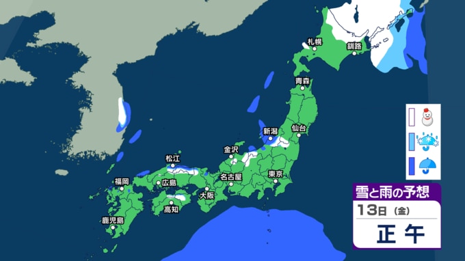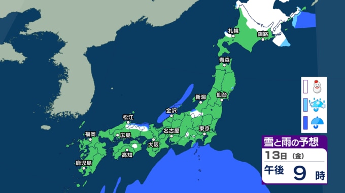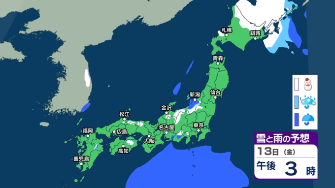 【東京首都圏10日雪?】東京・神奈川・千葉・埼玉・茨城・群馬・栃木・山梨・長野 関東甲信8日(日)~13日(金)3時間ごと雪雨シミュレーション 13日(金)広範囲で雪と雨の予想【気象庁8日現在】|TBS NEWS DIG