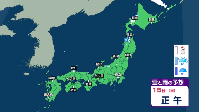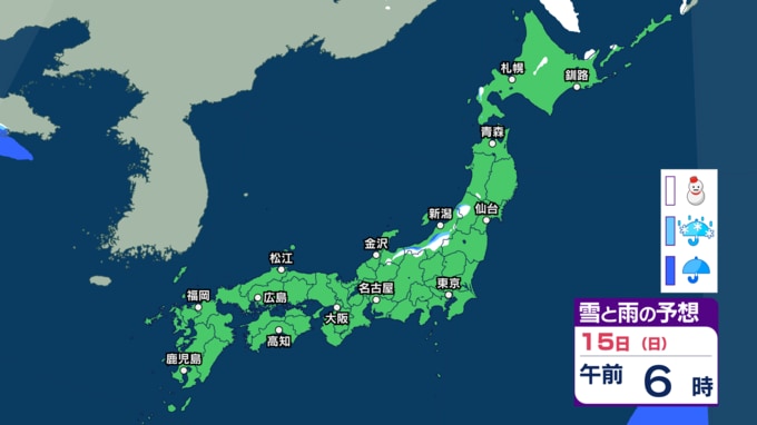 16日(月)の雨と雪のシミュレーション