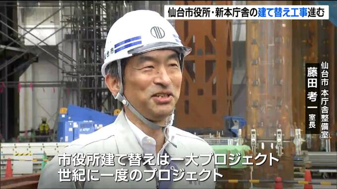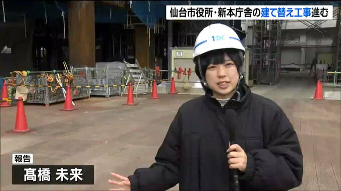 本庁舎の建て替え工事が進む仙台市役所で3月13日、工事現場の報道公開が行われました。鉄骨は3階まで組み上がり、新しい本庁舎の大きさが見えてきました。