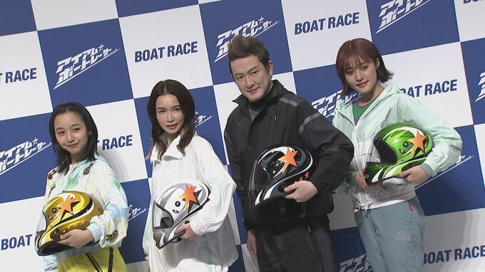 「ボートレース2023年」新CMシリーズの『アイ アム ア ボートレーサー』の記者発表会が行われ、CMキャラクターの中村獅童さん、そして新たにCMキャラクターとなった長谷川京子さん、王林さん、山之内すずさんが登場しました。