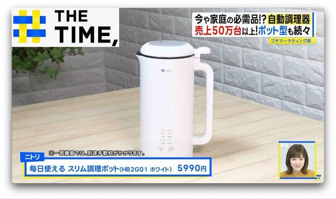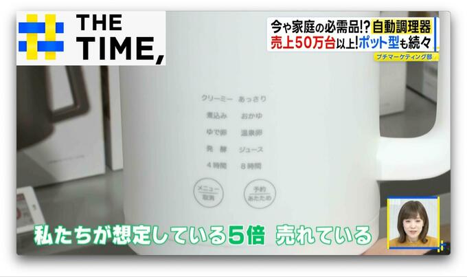 平均1万円ほどの自動調理ポットが、しっかりとした8枚刃+8種類の自動メニューもついて6000円を切る値段で、当初の想定の“5倍売れている”という人気ぶり。一時完売していたこともあるといいます。