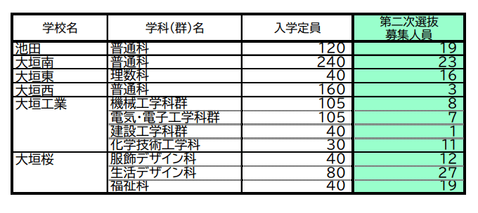 【岐阜県公立高校入試2026】「第2次選抜」の募集人員 合格者が募集に満たない学校で実施 全日制・定時制 通信制後期選抜も 〈一覧で掲載〉 CBCテレビ 2026年3月13日(金) 13:31 国内 池田・大垣工業・不破・郡上など