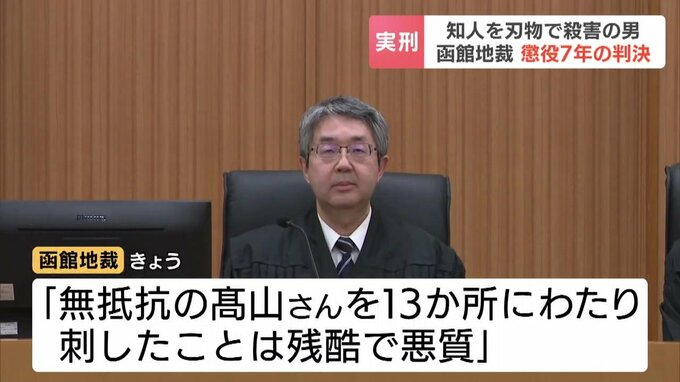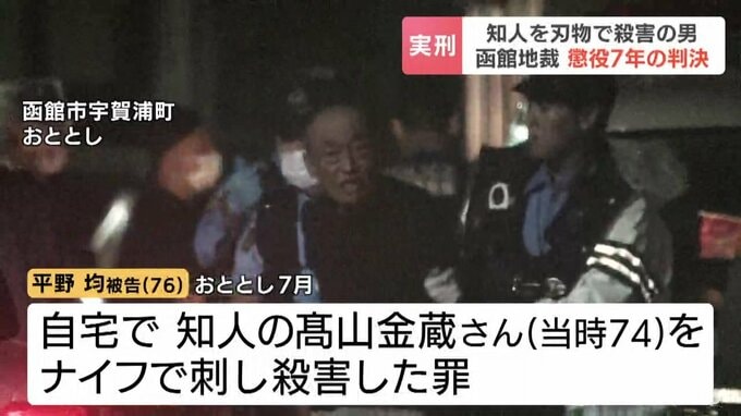 2024年、北海道函館市で知人の男性を刃物で殺害した罪に問われている76歳の男の裁判員裁判で、函館地裁は、懲役7年の実刑判決を言い渡しました。