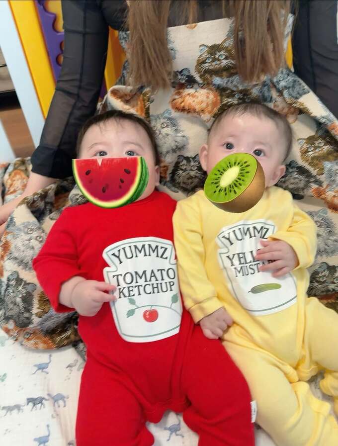 翔子さんは「双子に新しいロンパース買いました」「前からずっと気になってたケチャップandマスタード 双子ならではロンパース」と、この取り合わせがツボに入った模様。「ロンパースの時期は小さいうちだけだからせっかくだから色々たのしみたい!」と、もっともな思いを訴える翔子さんは「かわいい面白いロンパースあったら教えてください!」とフォロワーに呼びかけ。