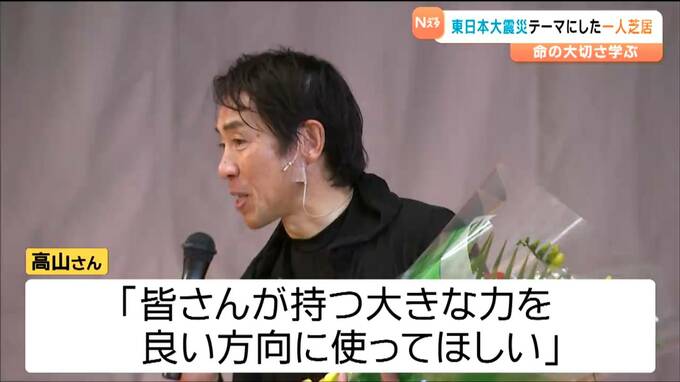宮城県女川小中学校で一人芝居を演じたのは、栗原市出身の俳優・高山広さんです。披露したのは、東日本大震災をテーマに自らが脚本を手掛けた「さくらばあちゃんのいる街」という演目です。