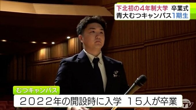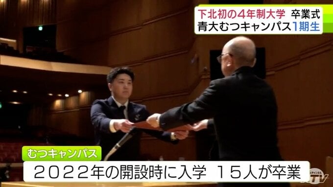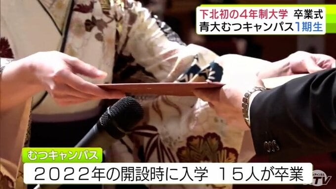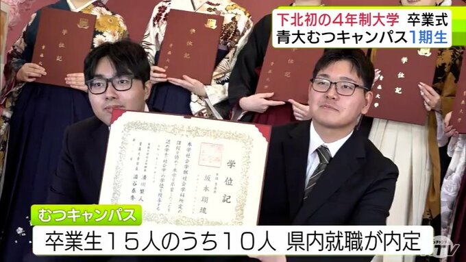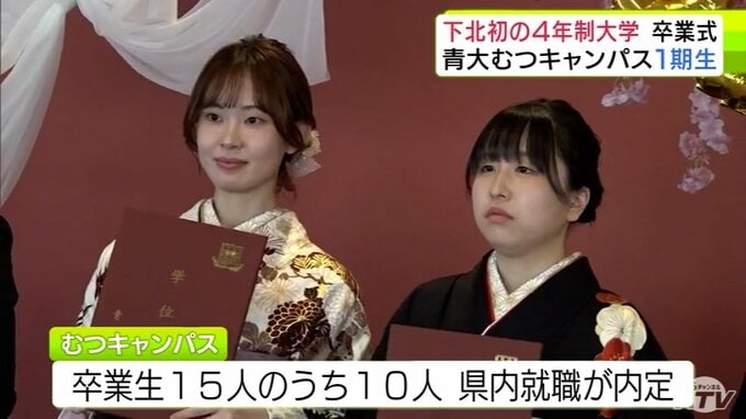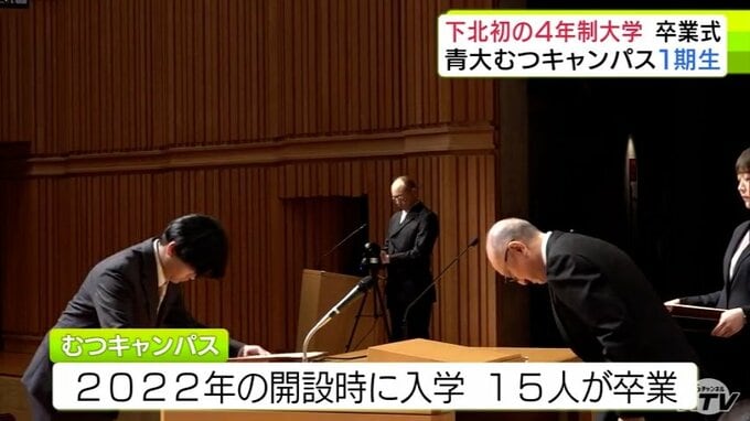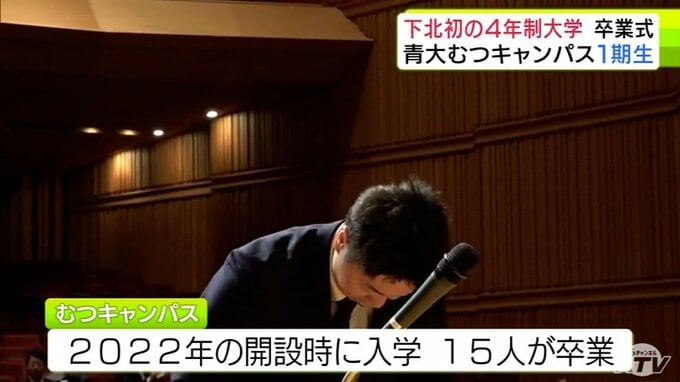 下北地域初の4年制大学「青森大学むつキャンパス」で卒業式 15人の1期生が晴れて卒業の日を迎える 10人は県内就職内定 青森県 青森テレビ 2026年3月13日(金) 21:00 国内 【写真を見る】「青森大学むつキャンパス」の卒業式 ※「NEWS DIG」のアプリやサイト以外でご覧の方は、関連リンクから画像をご確認いただけます。