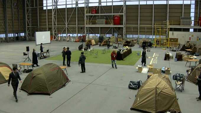 「きょうの宿泊場所はホテルではありません。普段は入ることができない格納庫です」