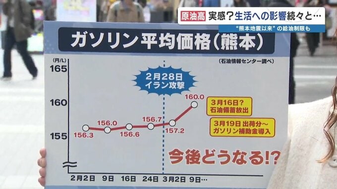 ガソリン平均価格は、熊本でも4週連続で値上がりしています。政府も策を講じる予定ですが、街の人はどう思っているのでしょうか。